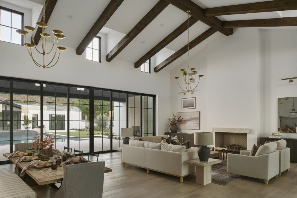 Expansive, floor-to-ceiling windows create instant drama, amplify natural light, and blur the line between indoor and outdoor living — a defining feature of modern resort-style design.